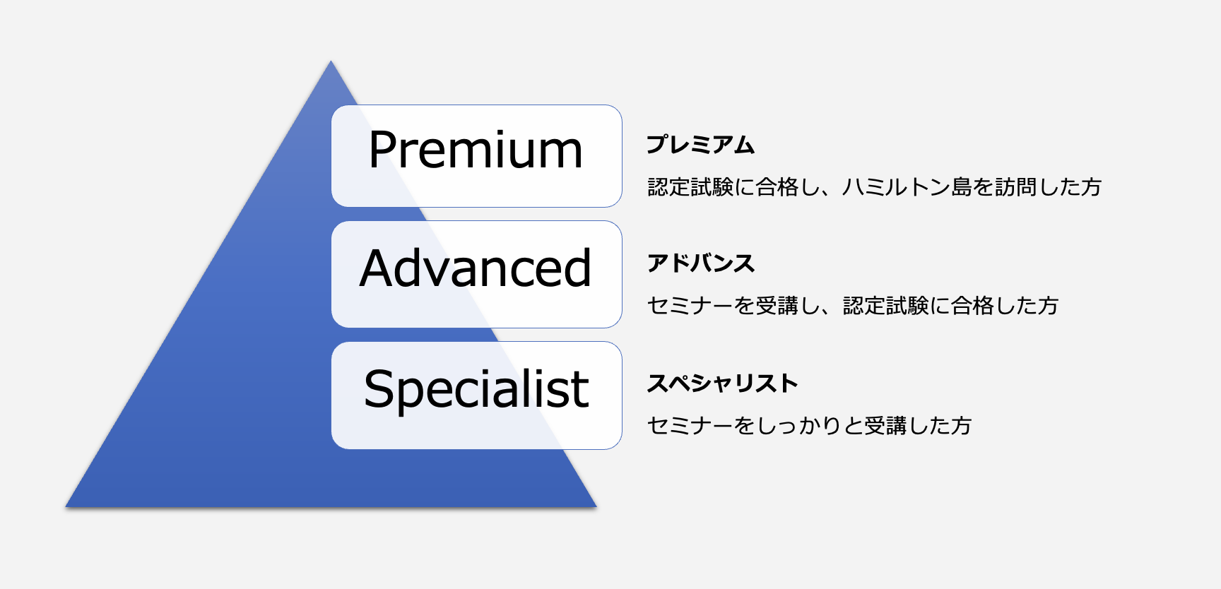 しっかり受講後、ハミルトン島スペシャリストに認定を受け、アドバンス認定へと進むステップです。